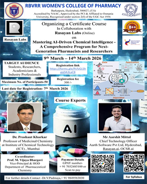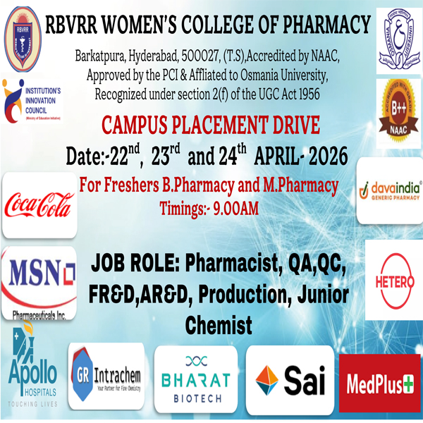 RBVRR College of Pharmacy has its roots in RBVRR Women’s College and Hyderabad Mahila Vidya Sangam (HMVS). The college is named after Raja Bahadur Venkatram Reddy, former Commissioner of Police in the erstwhile Hyderabad State under the regime of Nizam, as a befitting honor and tribute for his yeoman services in the causes of women’s education. Raja Bahadur Venkatarama Reddy, OBE, was born on August 22, 1869, in a middle class family at Rayanpet in Wanaparthy. He lost his parents early in his childhood and was brought up by his uncle, William Wahab, who had a great influence on him. He had great passion for education which made him pursue further studies, in spite of opposition from his relatives. The Nizam of Hyderabad honored Sri Venkat Rama Reddy with the title of “Raja Bahadur” in recognition of his services to the state. King George of England conferred the title of “Order of British Empire’ for solving the Indian labour problem. A statue has been installed in his memory in the city which is a rare for a police officer. A pioneer in the field of education, he took several measures to spread literacy among the people of the Telangana region and to promote Telugu as the medium of instruction. The education of backward area of Telangana Girls, in particular, received powerful impetus from him. It is this pioneering spirit of his, which made him take the first step in establishing a college for women in the early days of 1949.